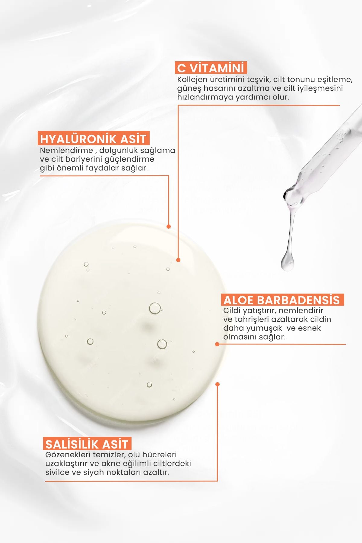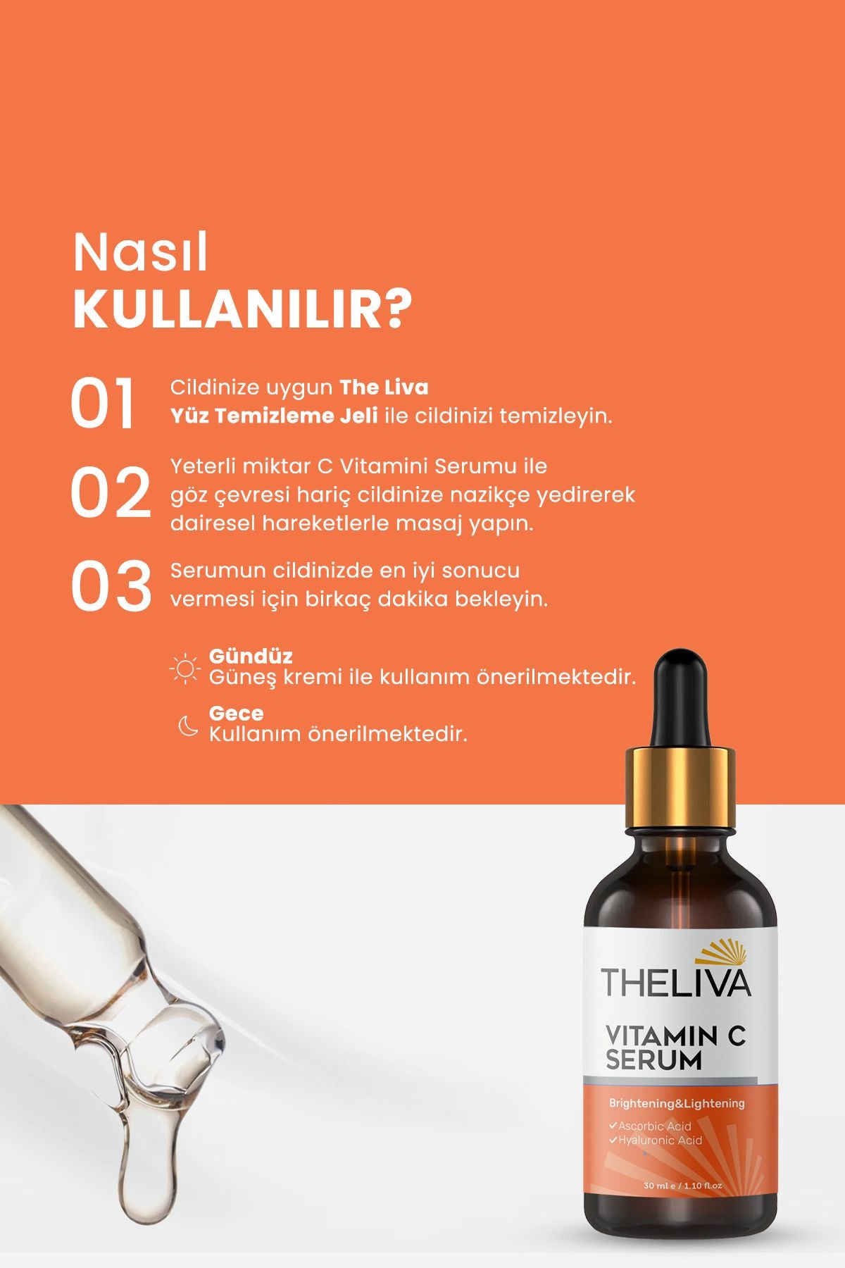Specially formulated to leave your skin looking bright, vibrant, and healthy , THELIVA Vitamin C Serum evens out skin tone with its highly effective vitamin C and provides deep hydration thanks to hyaluronic acid . Salicylic acid helps purify pores, while aloe vera and plant extracts soothe and nourish the skin.