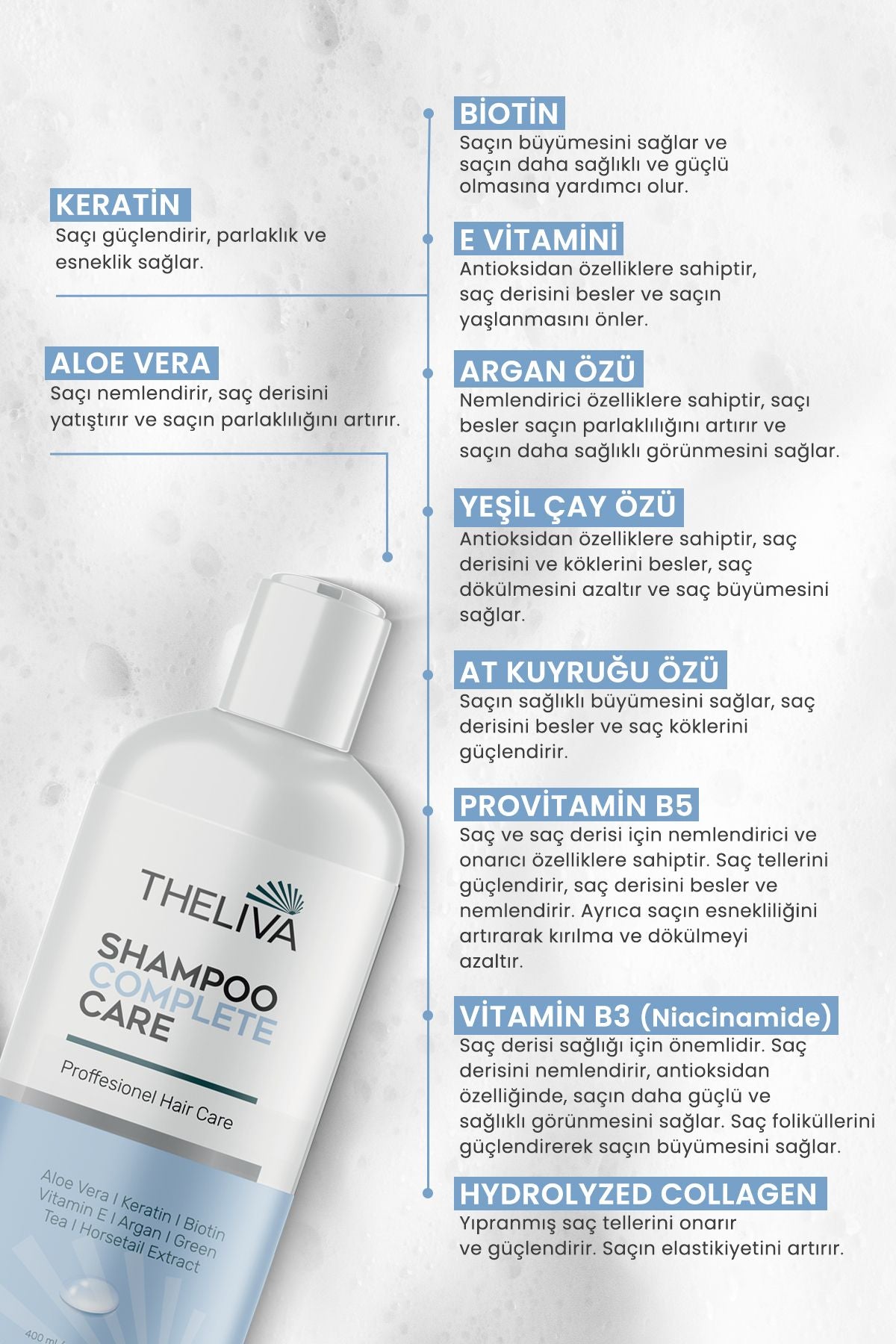 Hidrolize Kollajen:Saçı onarır, daha dolgun ve esnek görünmesini sağlar.